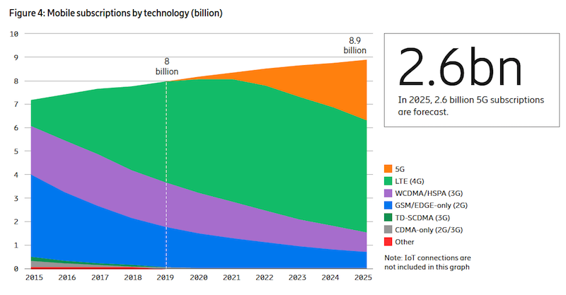 This is, simply put, a huge growth; just think that 2019 closed with just about 13 million subscriptions for 5G, compared to a total of 8 billion 4G subscriptions in 2019.